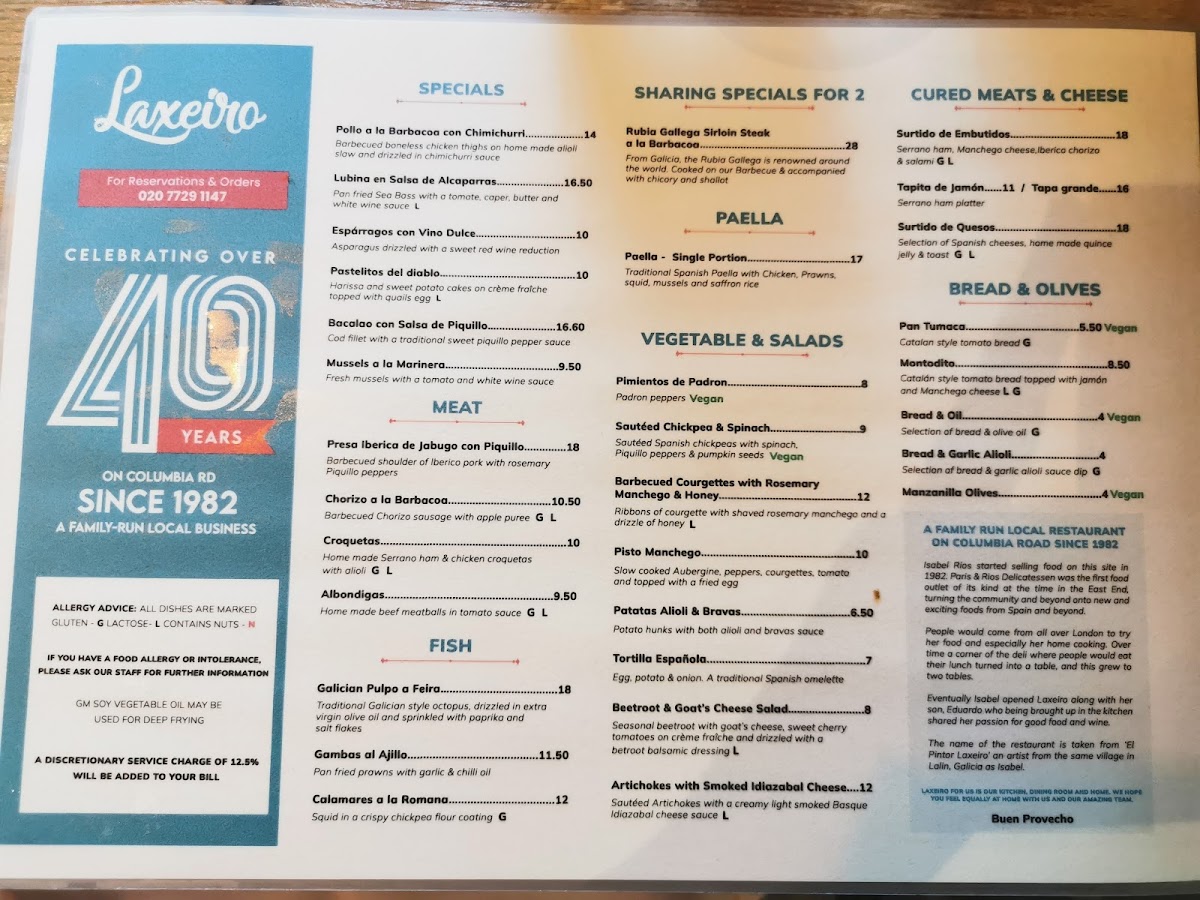 Welcome to Laxeiro, an inviting Spanish eatery located at 93 Columbia Rd, London. Known for its cozy atmosphere and friendly, attentive service, Laxeiro has quickly become a favorite among locals and visitors alike.