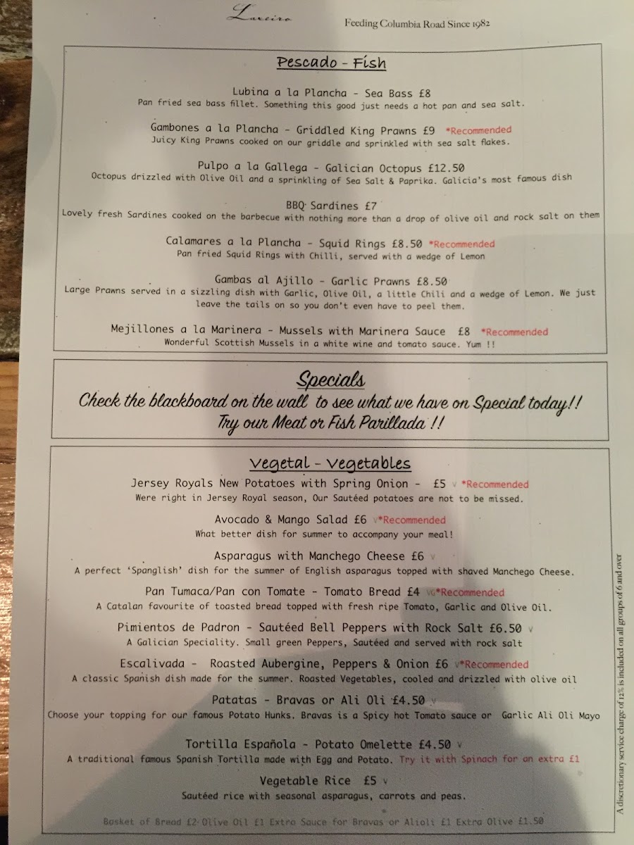 - Lubina Con Ajo Y Limón: Pan-fried sea bass with a zesty garlic and herb salsa (£16.50).